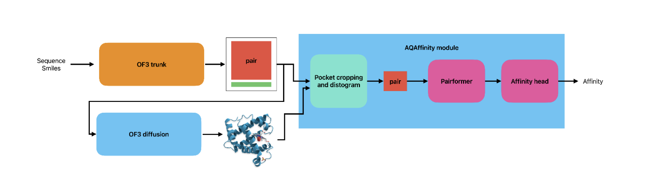 The AQAffinity model is run as a standalone application on top of an existing OpenFold3 installation. We provide both inference and training code, so users can train or fine–tune the model on their own data.